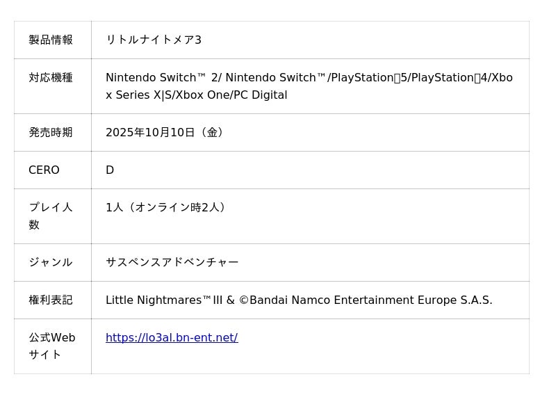 ■『リトルナイトメア3』公式サイトはこちら:https://lo3al.bn-ent.net/