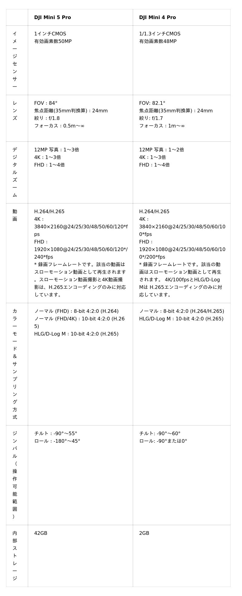 前モデル「DJI Mini 4 Pro」から約2年。新登場の「DJI Mini 5 Pro」は、カメラ性能・機体性能の両面でMiniシリーズ史上最高のスペックを実現しました。Miniシリーズ初となる42GBの内蔵ストレージや、前方LiDARの搭載により、もはや“エントリーモデル”の枠を超えたワンランク上の機能を備えています。