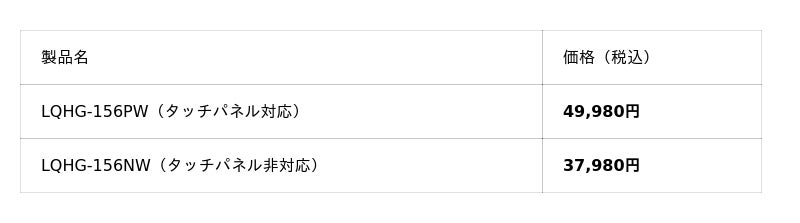 - タッチ操作・ペン入力対応 (LQHG-156PW)