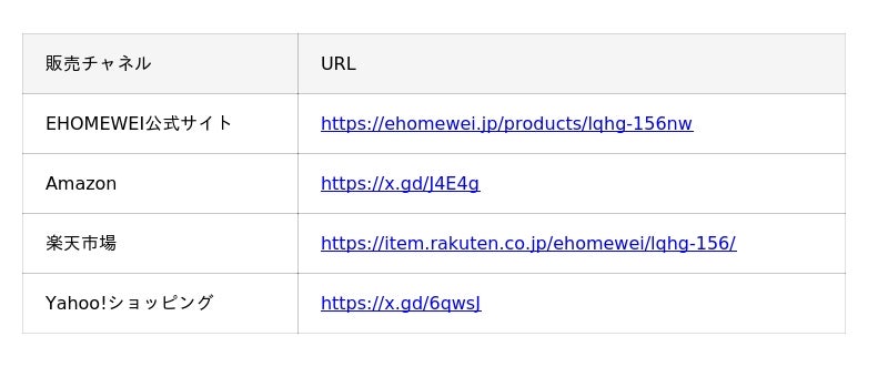 【新発売】Nintendo Switch 2対応!ドック不要・ケーブル1本接続で表示可能なモバイルモニター「LQHG-156PW/NW」<EHOMEWEI>