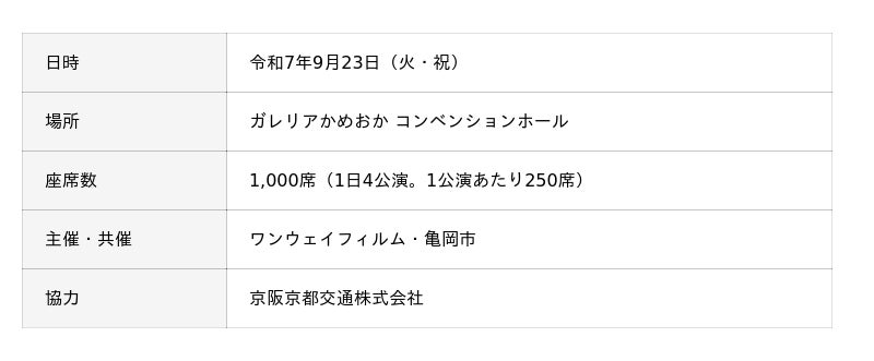 京都府亀岡市(市長:桂川孝裕)は、 バスという日常的な乗り物を舞台に亀岡市の魅力溢れる美しい風景の中で、人々の心の機微を丁寧に描いた映画「つぎとまります」(主演/秋田汐梨)の上映会を、2025年9月23日(火・祝)にガレリアかめおかコンベンションホールで開催します。2025年2月にも上映会を実施し、1日3回の上映すべてで満席と大変好評であり、再度の上映会の要望があったため、今回の上映会では回数を4回に増やして多くの皆さんをお迎えします。