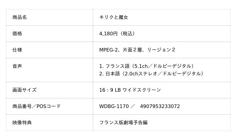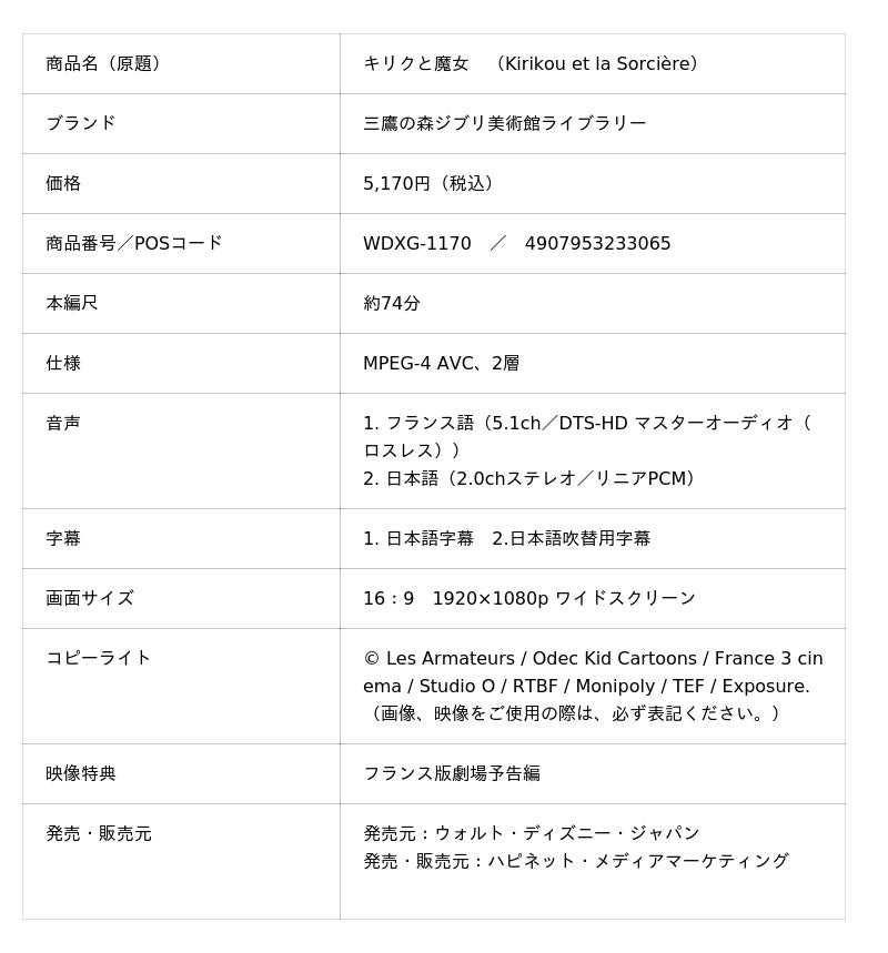 フランス映画界の巨匠ミッシェル・オスロ監督による初長編アニメーション作品。小さなキリクの好奇心が世界を変える愛と赦しと喜びの物語。『キリクと魔女』ブルーレイ/DVD 2025年12月10日(水)発売!