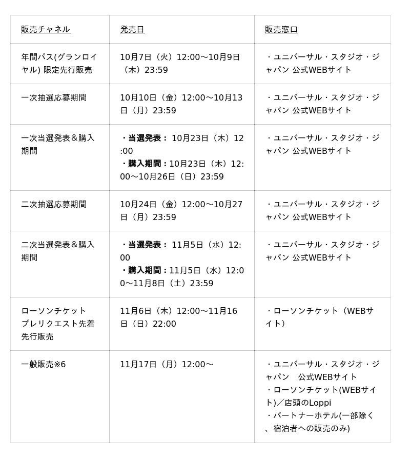 ※年間パス(グランロイヤル)限定先行販売や抽選販売の詳細は公式WEBサイトを必ずご確認ください