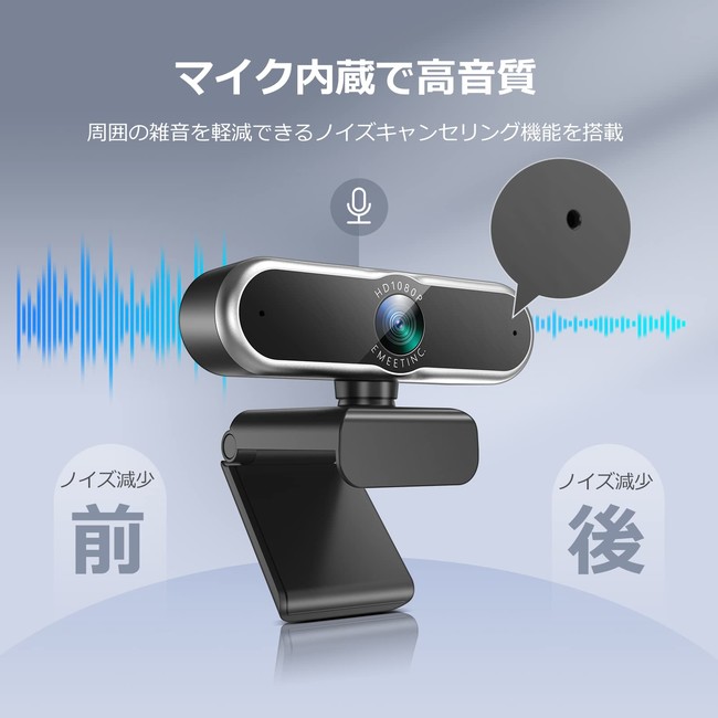 カメラ内部には全方向マイクを搭載。360度どの角度からもクリアな集音を可能にします。ノイズキャンセリング機能にも対応しており、雑音を抑え、通話中に発生しやすいハウリングを軽減。自然かつクリアな音声を相手に届けることができます。