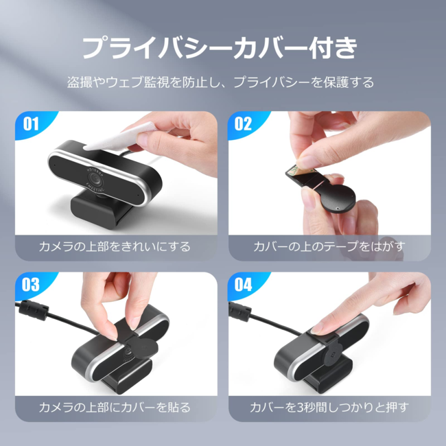 本製品はプライバシーカバーを搭載しており、非使用時にカメラを無効化することで、切り忘れによるプライバシーの流出や、遠隔ハッキング等による盗撮を防ぐことが出来ます。