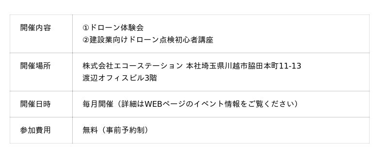 株式会社エコーステーションが運営する「小江戸ドローン」(所在地:埼玉県川越市、代表:岩崎 拓二)は、ドローンの魅力や活用方法をより多くの方に知っていただくため、【体験イベント/セミナー】を定期的に開催しています。