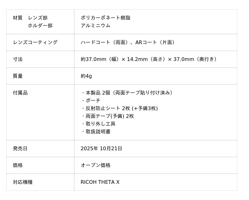 株式会社リコーは、360度カメラのレンズ部を保護しながら、高画質な360度撮影を実現するRICOH THETA X専用アクセサリー「レンズプロテクター TP-1」を新発売します。