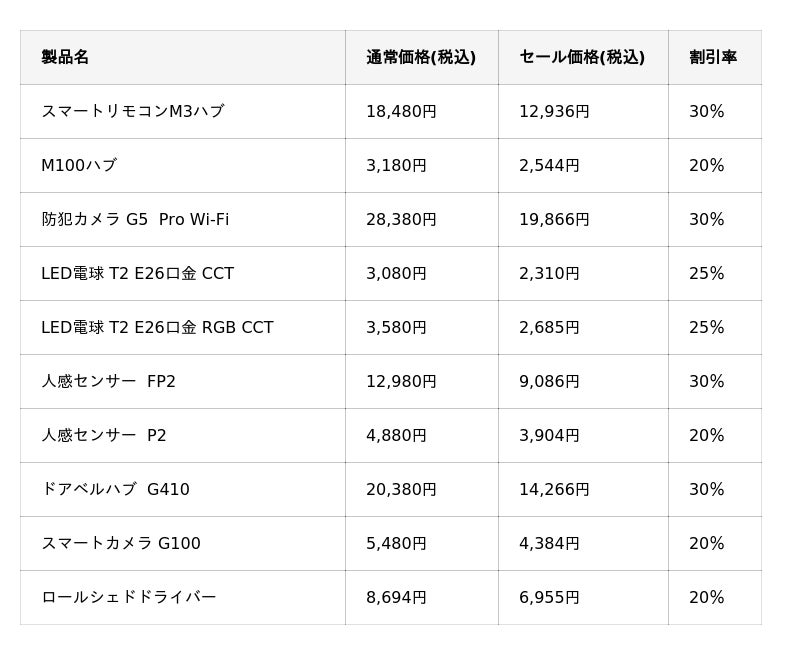 今回、10月4日(土)〜6日(月)に先行セール、7日(火)〜10日(金)で本番セールを予定している「Amazonプライム感謝祭」では、最新アイテムを含むAqara全34製品を最大30%OFFでお買い求めいただけます。スマートホームの中心として幅広い製品を統合できる人気の「M3ハブ」などに加えて、ハブなしで導入できる「LED電球T2」や「人感センサーFP2」「スマートカメラG100」など、スマートホーム上級者が生活を豊かにする新たなギアとしては勿論、これからスマートホーム製品に触れたい初心者の方も手軽にお試しいただけます。