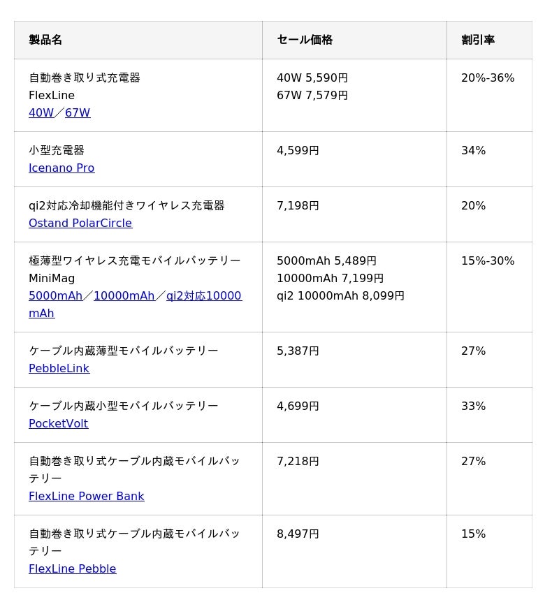 下記の割引率は随時変動する可能性がありますので、製品ページにてご確認ください。充電アクセサリー
