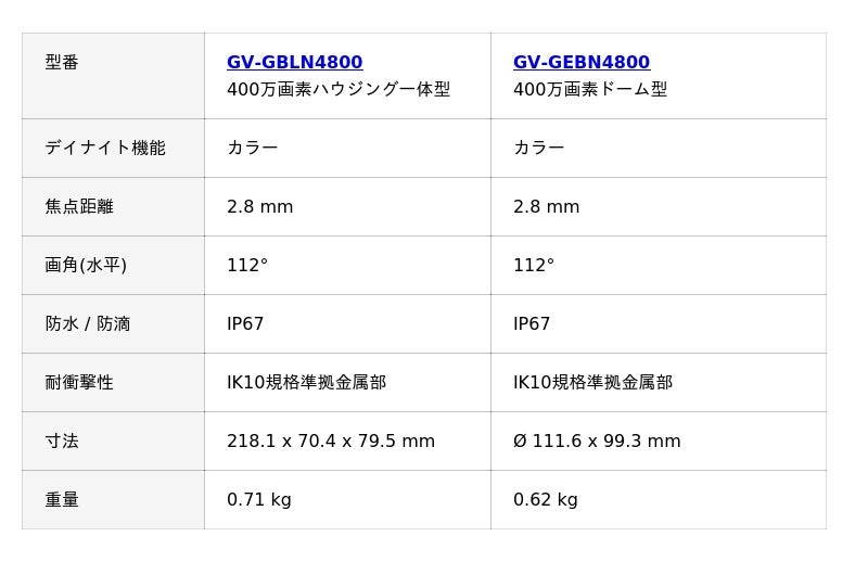GV-GBLN4800屋外対応400万画素ハウジング一体型AI-ISPフルカラーカメラ