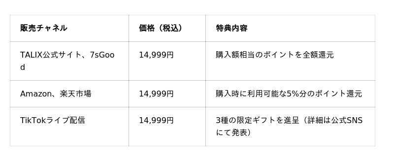 Amazon TALIXストア:https://www.amazon.co.jp/dp/B0FVFCYM9V