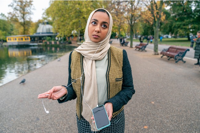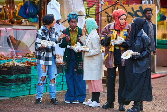 寿:作品を見て、ロンドンが見たまんまそこにある!と感動したのが最初でした。私がロンドンで学校に通っていた時に仲の良かった子はイラク人の女の子だったのですが、本当にレディパーツのメンバーと同じ感じで、より親近感を感じていました。あとは、アブドラがロイヤルメールのユニフォームを着て郵便配達をしている姿や、バスなど、一つ一つが懐かしかったです。あとはアッサンが「自分の出身はシェパーズ・ブッシュで、ウェストロンドンボーイだから」っていう台詞も、私も同じ地方に住んでいて、“ウエストロンドンガール”だったので、すごく近しいものを感じてテンションが上がっていました。ロンドンの絶妙な、ありのままの姿が、私たち日本人にとってはオシャレに見えるのですが、ずっと住んでいる人にとってそれは自然な姿で、アートなんだと思います。ロンドンに根付いている町中の風景が作品に沢山入っていてとても素敵でした。そういったロンドンだからこそ作り出せたドラマの演出も、所々歌いだしたり、パペットと一緒に歌ったり、コメディパートで別の役柄が入ったりアニメーションがあったりと、すごく凝っているなと思って、テンションが上がったのを覚えています。