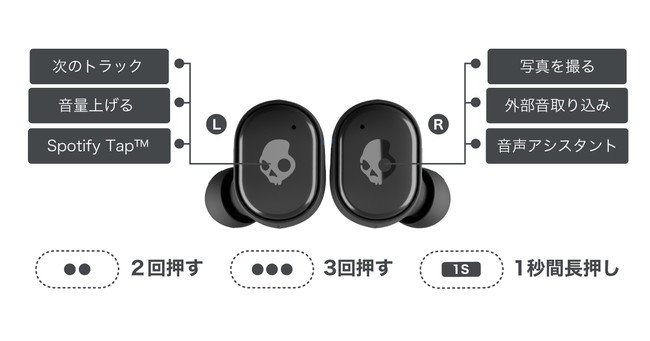 「ヘイ スカルキャンディー」で起動するボイスコントロールは、Skull-iQスマートテクノロジーの傑出した機能です。音楽の再生や停止、通話の応答や拒否、周囲の状況を把握できる外部音取り込みのオンオフ、デバイスの音声アシストを利用出来ます。Skullcandyは、世界で最も人気のオーディオストリーミングサブスクリプションサービス『Spotify』とのパートナーシップを通じて、ボイスコントロールでのSpotify Tap™を実現させました。「ヘイ スカルキャンディー、スポティファイ」と呼びかけるとSpotifyが起動します。SkullcandyのチーフプロダクトオフィサーであるJeff Hutchingsは次のように述べています。 「Skullcandyは、スカルキャンディーを使うあなたと共に挑戦し続け、情熱が進化の原動力です。Skull-iQによるボイスコントロール 機能でイヤホンにすら触れず操作可能です。無線アップデートにより開発された新しい機能が追加でき、最新テクノロジーを搭載したイヤホンへと進化していきます。Skull-iQ を搭載したGrindとPush Activeを発売出来ることにワクワクしています。」