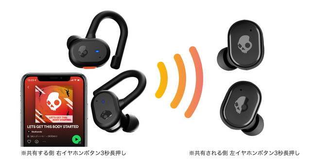 ※双方のイヤホンがSkull-iQ対応のイヤホンで使用できます。アプリ起動は不要。