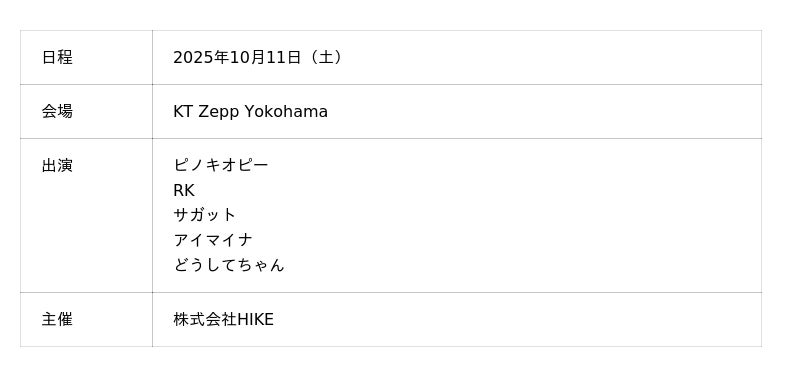 ピノキオピーのワンマンライブ『「CREATURES」− Aimaina & Doushite 15th Anniversary −』(主催:株式会社HIKE、以下「CREATURES」)が10月11日、KT Zepp Yokohamaにて開催されました。本リリースでは公演を終えたピノキオピー本人のコメントを公開するとともに、ライブの模様をレポートします。