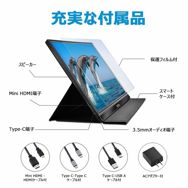 モバイルモニターの本体に搭載したType-C端子が映像出力と給電が同時に行います(お持ちのデバイスのType-C端子は低電力の場合、USB- TypeCで外部電源(モバイルバッテリーなど)による給電が必要になります)。Mini HDMI端子も備えて、スクリーン拡張及び映像出力ができ、サブモニターとして使い勝手が良いです。
