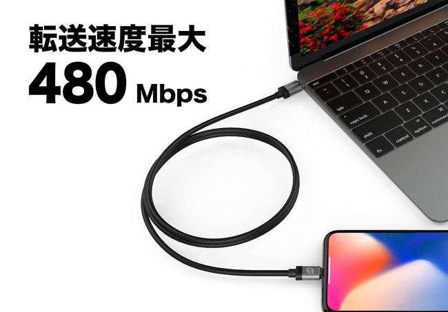 高速充電対応のiPhone、iPadであれば付属のケーブル、アダプタと比較して最大約2.5倍の速度で充電ができます。