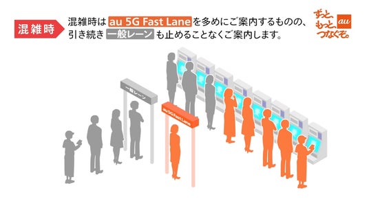 なお、局所的に人が集中することで通信が不安定になりやすい音楽フェスでの通信改善として、人が集中するエリアをカバーする車載型基地局を導入します。また、混雑時でも快適に5G通信できる「au 5G Fast Lane」(注2)が利用できます。