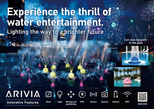 ARIVIA(アリヴィア)は、噴水・LED・自動航行機能を備えた“水上ドローン”として誕生した、新しい水上エンターテインメントです。水上で“光・音・動き”を融合させたエンターテインメントを創出する、ブイ型の自律制御デバイスで、本体には、カラフルなLEDライト、制御可能な噴水、GPS、音響再生機能を搭載。複数台を連携させた水上ドローンショーや、音楽・プロジェクションマッピングとの連動演出にも対応予定です。