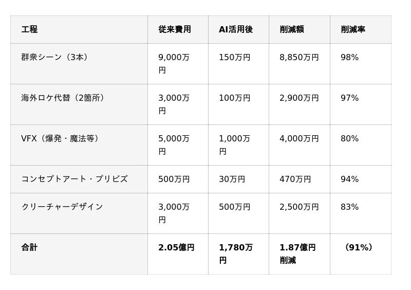 → 制作費5億円の作品が3.2億円で実現可能(36%削減)