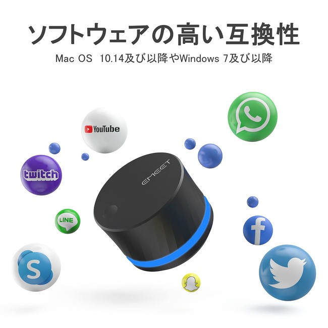USBボリュームコントローラーはmacOS10.14、windows7及び以降のPCをサポートでき、Skype、Line、FaceTime、Youtubeなどのさまざまなアプリケーションやソフトウェアとも互換できる。 eMeet社のウェブカメラC960などと一緒に使用することをおすすめいたす。