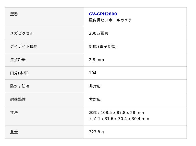 GV-GPH2800は、カメラの存在感を抑えたい場所に最適なピンホールカメラです。超小型レンズで、ATM裏やカウンターなど目立たせたくない場所に設置が可能です。