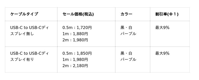 (C to C)1m:https://www.amazon.co.jp/dp/B0D4VMJKWG