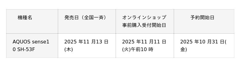 株式会社NTT ドコモ(以下、ドコモ)は、進化したAI でクリアな通話を実現し、電話応対や写真撮影時もAI が賢く働くスマートフォン「AQUOS sense10 SH-53F」を2025 年11 月13 日(木)に発売いたします。発売に先立ち、2025 年10 月31 日(金)から予約受付を開始いたします。