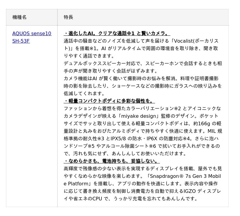 ドコモ、「AQUOS sense10 SH-53F」を11 月13 日に発売