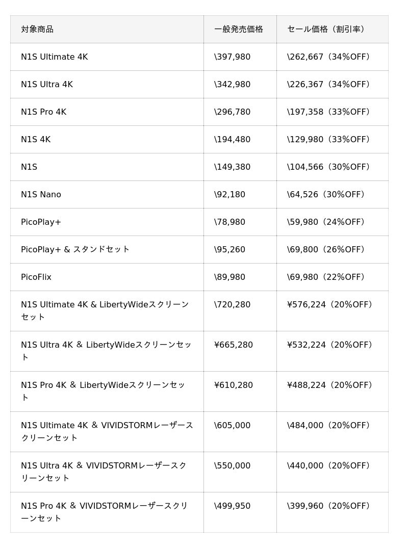 大人気の4Kレーザープロジェクターやモバイルモデルが、最大34%OFFで登場します。