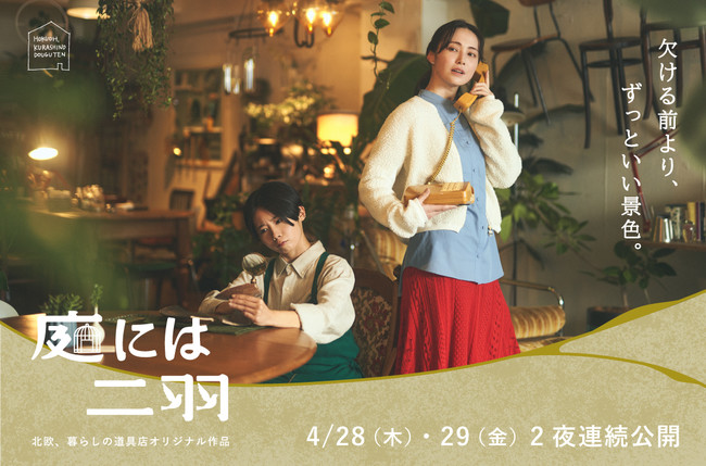 ライフカルチャープラットフォーム「北欧、暮らしの道具店」において、雑貨や衣類などの開発・販売、メディア運営などを行う株式会社クラシコム(本社:東京都国立市、代表取締役:青木耕平、以下「当社」)は、『青葉家のテーブル』(2018)『ひとりごとエプロン』(2019)『スーツケース・ジャーニー』(2020)に続く4作目のオリジナルドラマ『庭には二羽』を4月28日(木)29日(金)に二夜連続でYouTubeにて公開することが決定いたしました。本日、作品情報、予告編、場面写真、出演者・制作陣からのコメントを解禁いたしました。