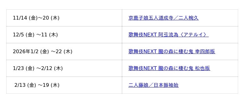 今後の《月イチ歌舞伎》2025のラインナップはこちら!
