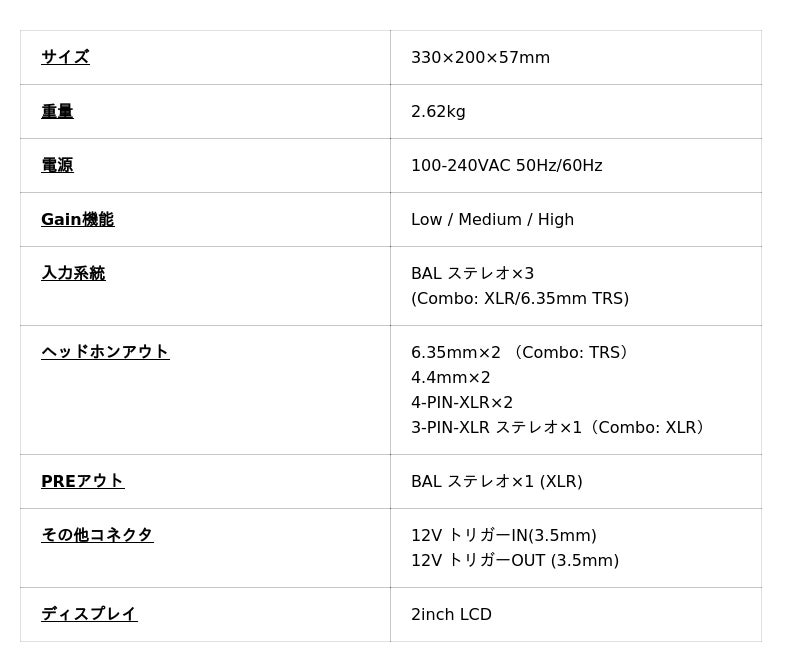 プリアンプ仕様 《一部抜粋》