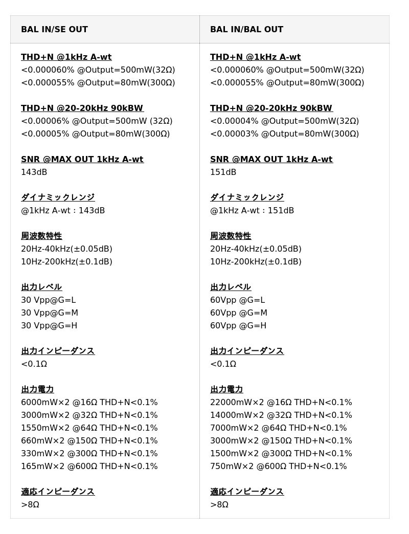 ヘッドホンアンプ仕様 《一部抜粋》