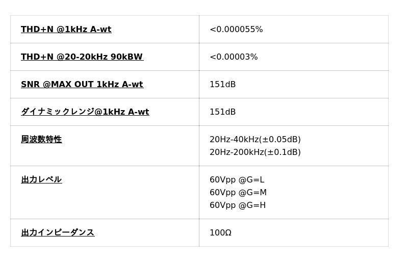 プリアンプとして、ヘッドホンアンプのフラッグシップ性能に匹敵する、THD+N <0.000055%を実現しました。