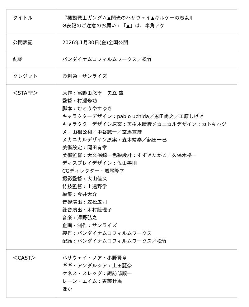 また、映画『機動戦士ガンダム 閃光のハサウェイ』の映像美と迫力、濃密な物語を再びスクリーンで観ることができる機会となりますので、ぜひ劇場へ足をお運びください。