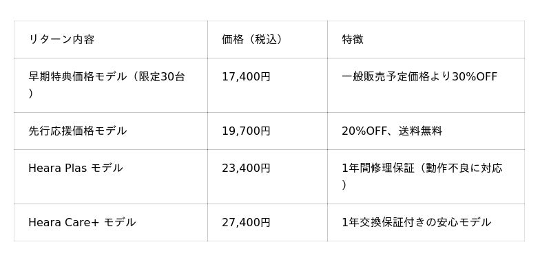 早期特典から1年保証付きモデルまで、CAMPFIRE限定価格でご用意。