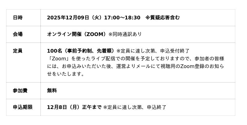 セミナーのプログラム、登壇者の詳細など、こちらでご確認ください。