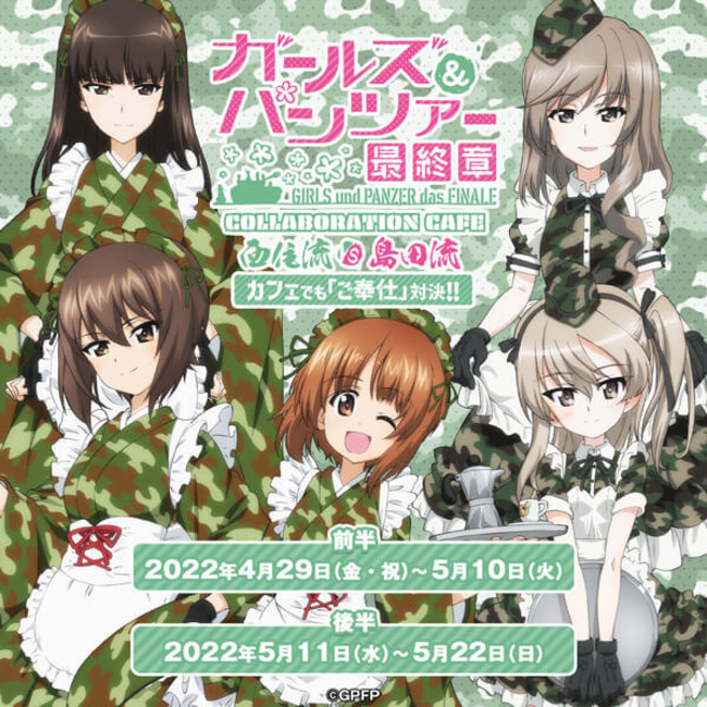 公式キャラクターコスチュームやアパレル、グッズの企画、開発、製造を行う株式会社コスパは、『ガールズ&パンツァー 最終章』"西住流vs島田流 今度の戦いは「ご奉仕」対決!?"をテーマとした描き下ろしイラストの限定グッズ・ポップアップショップ開催の発表に続き、東京・秋葉原の元祖メイドカフェ「CURE MAID CAFE(キュアメイドカフェ)[オノデン本店4F ジーストア・アキバ内]」でのコラボカフェ開催を発表した。