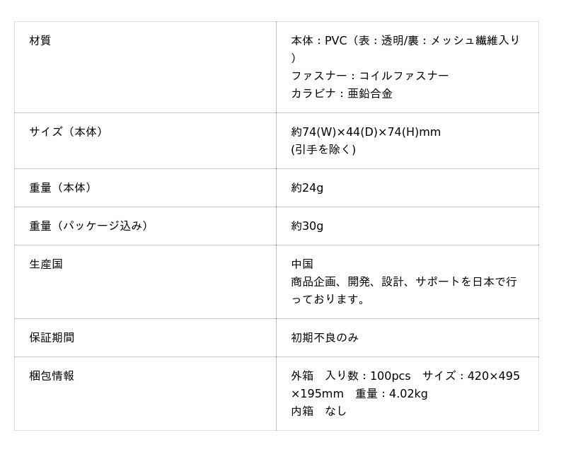 ちょうどいいサイズ感と便利なカラビナ付き