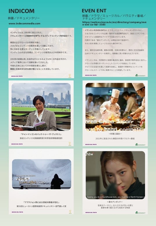 本出展は、韓国コンテンツ企業の日本進出を支援する拠点「KOCCA CKL TOKYO」に入居する企業によるもので、映像制作・ウェブトゥーン・ミュージカル・ARテクノロジーなど、多様なジャンルの最新コンテンツや技術を紹介いたします。日本のコンテンツ、メディア、エンターテインメント、舞台制作、スポーツなどの分野で、新たなビジネスパートナーシップと共同企画の創出を目指します。