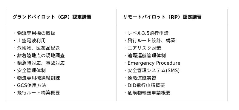 受講対象者は、陸上輸送の効率化やドローン導入によって陸から空へ物流インフラを拡張したい企業や新規参入企業などを想定しており、「物流空白地の解消」「災害時の物資輸送」「医薬品や生活物資の安定供給」など、地域課題に対して物流ドローンで補完し、住民生活の維持をサポートする企業を後押しします。