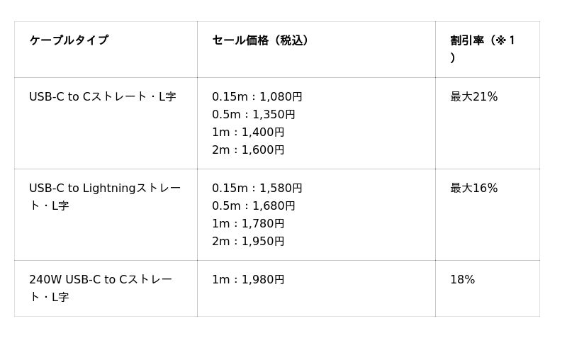 ・Amazon ブラックフライデー おすすめケーブル1