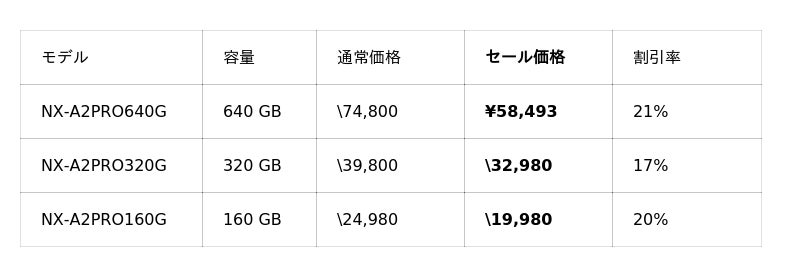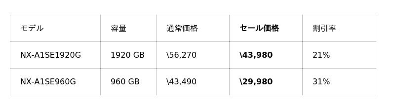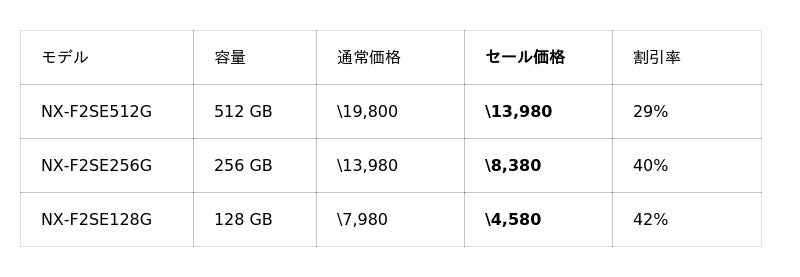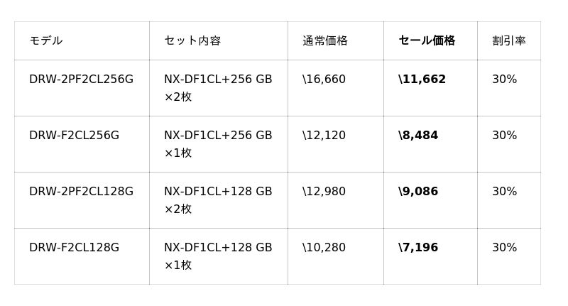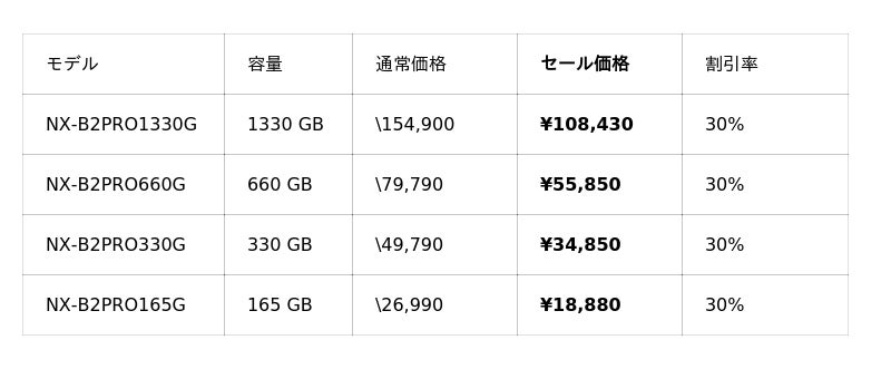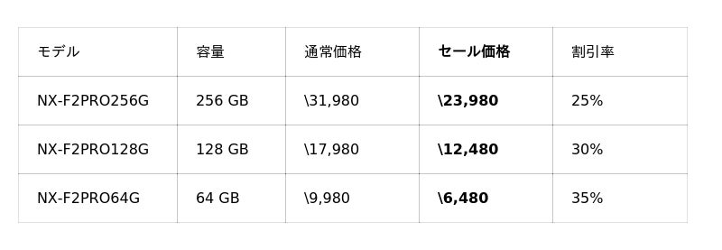 最大42%OFFのビッグセール!人気のCFexpress(TM) Type Bメモリーカード「NX-B3SEシリーズ」をはじめとした57アイテムがお買い得!