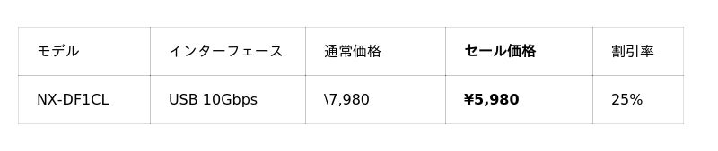 今回のセールでは、2025年10月に発売したCFexpress Type BメモリーカードとSDメモリーカード対応のマルチスロットカードリーダー「NX-MFB1SE」をセール対象商品としてラインアップいたしました。カードの種類ごとにリーダーを使い分ける煩わしさを解消し、より快適なワークフローを実現いたします。NX-MFB1SEは、各スロットにライトプロテクトスイッチが搭載されており、誤ってデータの上書きをしてしまうリスクも軽減いたします。