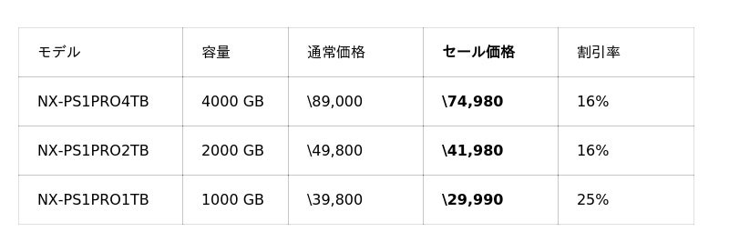 Amazon Nextorage公式ストア セール対象商品ページ(Imaging)▶