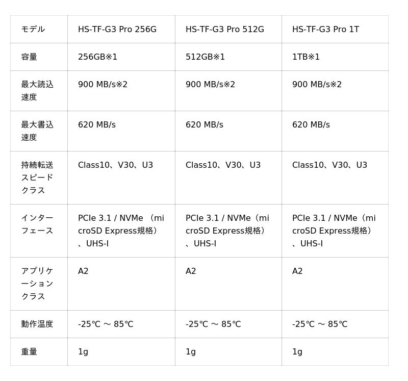 HIKSEMIの「HS-TF-G3 Pro」は、PCIe 3.1 および NVMe インターフェースを採用した microSD Express規格の次世代高速メモリーカードです。