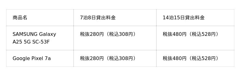 ゲオは、豊富な中古スマホ・タブレット在庫や、レンタル・リユースで培った運用ノウハウを活かし、「必要なときに、すぐ、安心して借りられるスマホ」という新たな選択肢を提供します。また、『iPhone SE 第3世代(64GB)』が7泊8日 税抜380円(税込418円)から、『Galaxy A25 5G』が7泊8日 税抜280円(税込308円)から利用できる、大変手軽な価格を実現しました。
