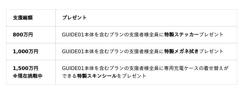 HappyLifeCreators株式会社(所在地:大阪市淀川区、代表取締役:牧長 心)が開発したメガネ装着型スマートディスプレイ「GUIDE01」は、クラウドファンディング開始後、多くのご支援をいただき開始から30分で目標金額を達成いたしました。その後も支援が順調に伸び、本日、支援総額が1,000万円を突破したことをお知らせいたします。ご支援いただいた皆さまに、心より御礼申し上げます。