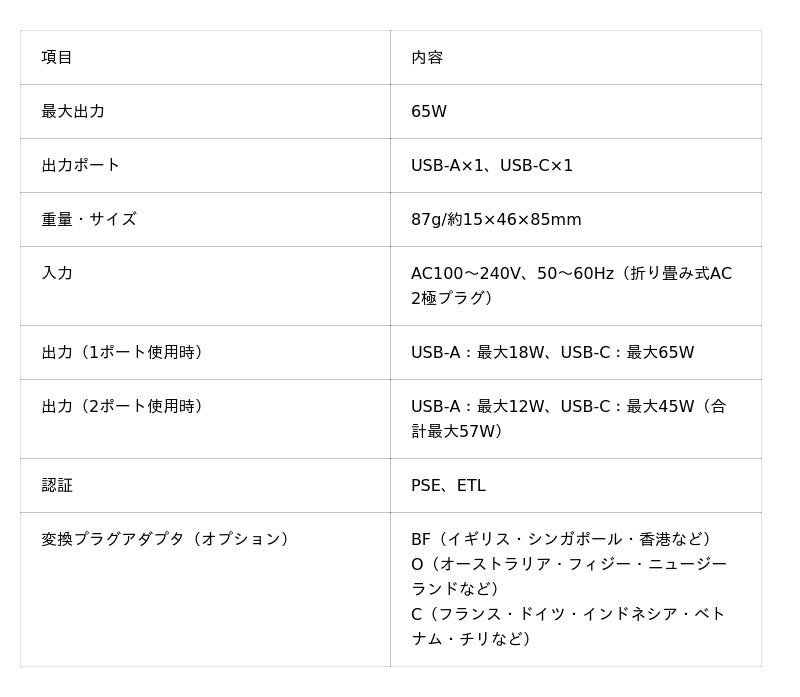 ・高出力対応(最大65W)